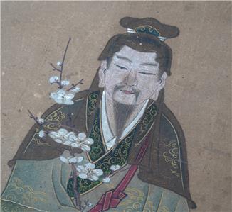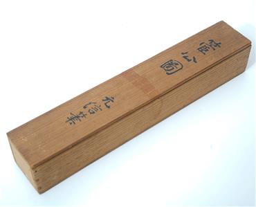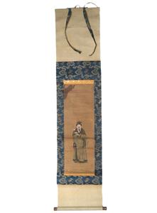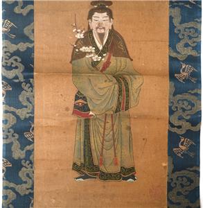 You have found the missing piece to your art collection! Here is the decorative scroll from Kano Motonobu, Japan. It portrays Tenjin visiting Tang China. This piece is 11 3/4" across by 53 1/2" long, the paper is 8" across by 23 1/4" long, the cloth section is 11 3/4" across by 32 1/4" long. It is in good preowned condition based on wear, small tears, and a stain. Please see our Not Just China store for more fine art & collectibles.