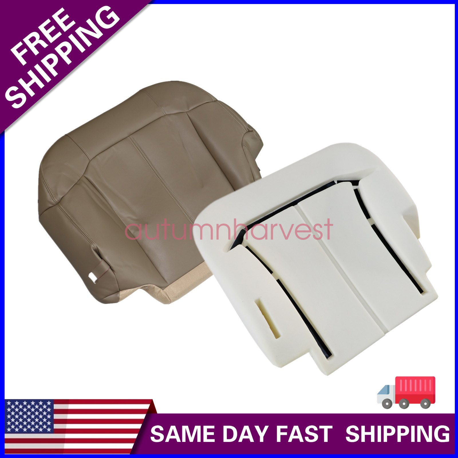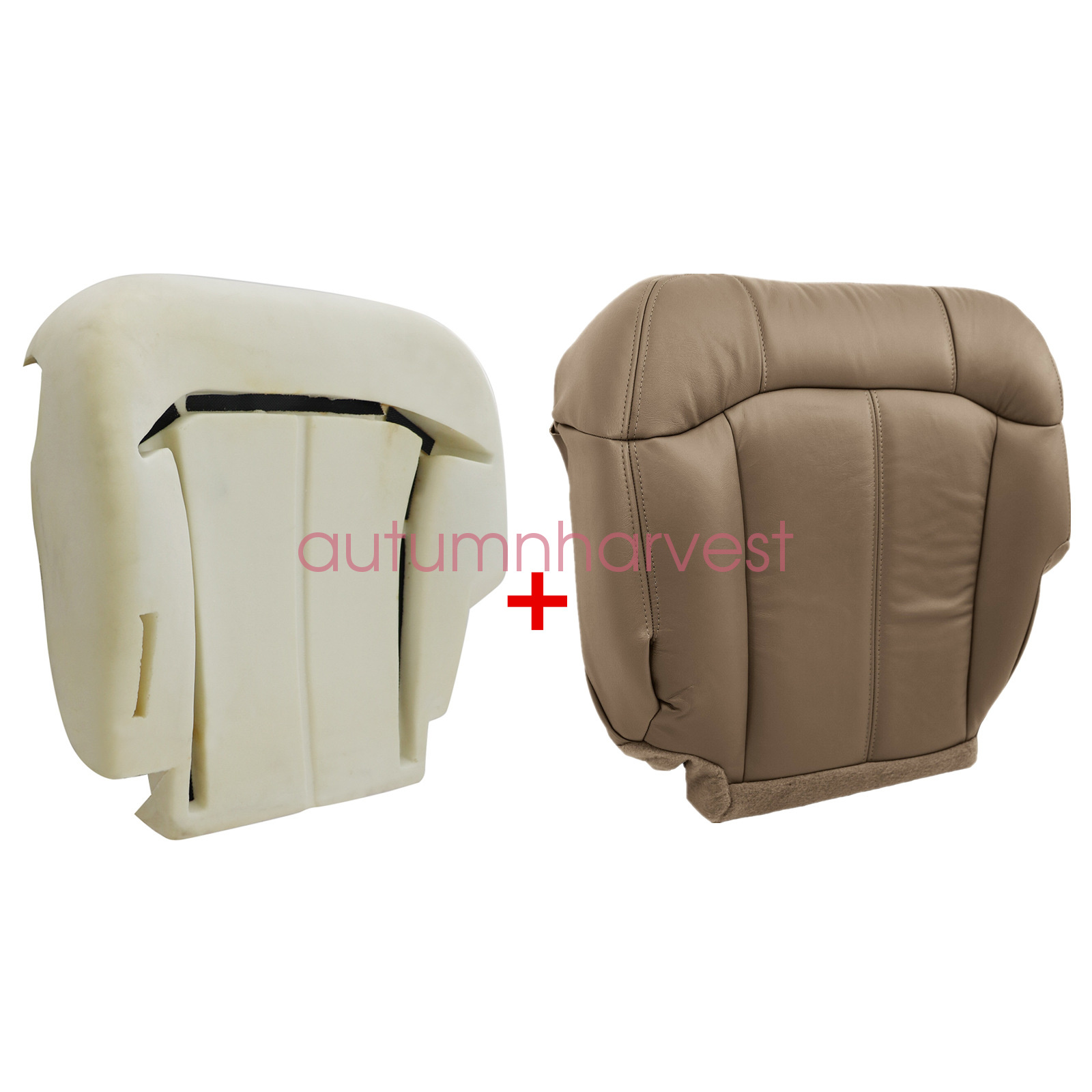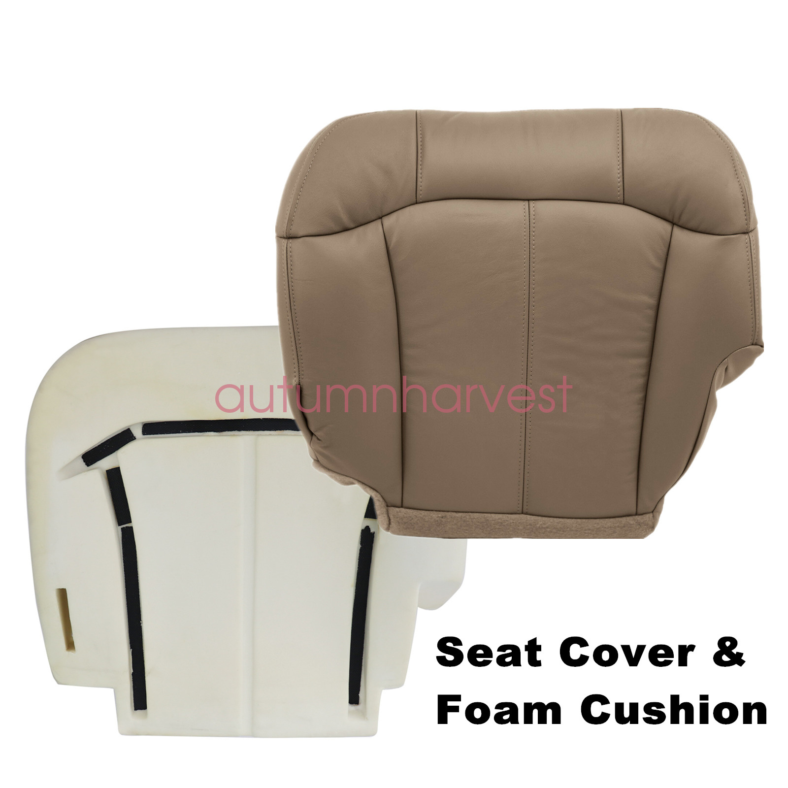 Replacement For 1999 2000 2001 2002 Chevy Silverado GMC Sierra Driver Bottom Leather Seat Cover & Foam Cushion Med Tan 522 or 52i