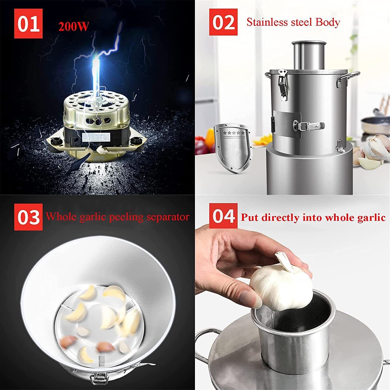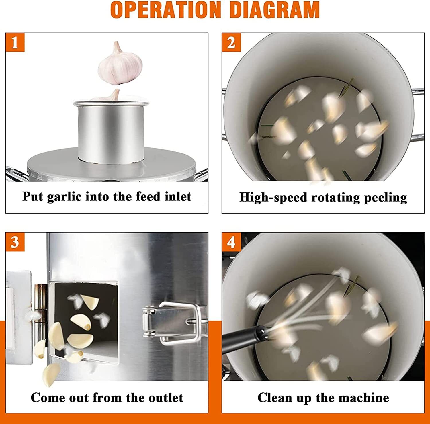 ★【High Efficiency】: The peeling machine adopts a high-quality 200W motor, which can directly put the dried garlic into the machine. The output speed of garlic is fast, the work efficiency can reach 30kg/h, and the peeling rate can reach 98%, saving time and effort.