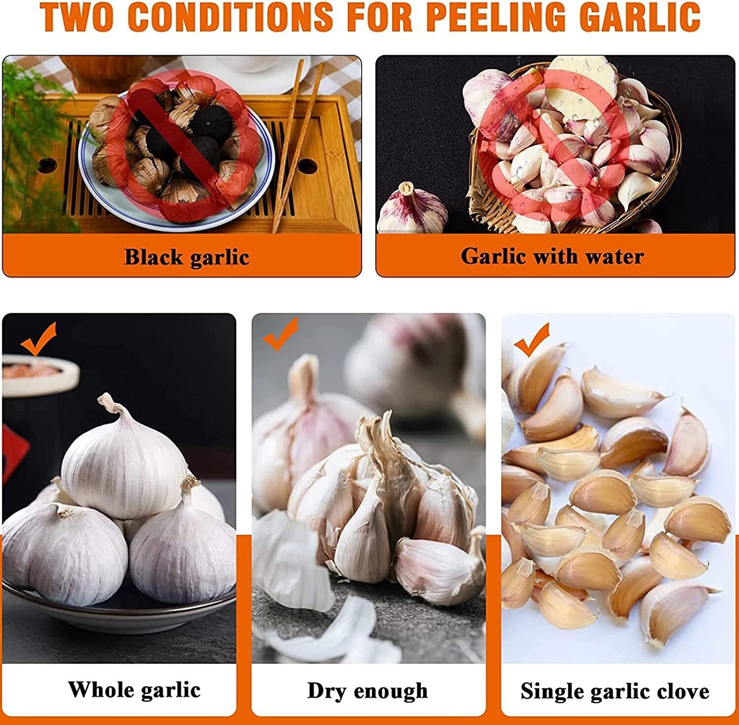 3. Dry garlic or Dry garlic sprout generally just need 25 seconds to peel. Fresh garlic or garlic with higher moisture would be difficult to peel, so dries or air-dries first before peeling.