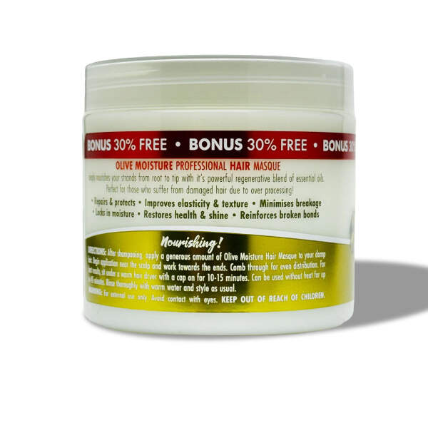 Revitalize and nourish your hair with Olive Moisture Professional Hair Masque. This luxurious masque is expertly formulated to deeply condition, hydrate, and strengthen your hair. Enriched with the natural goodness of olive oil and other nourishing ingredients, it leaves your hair soft, smooth, and beautifully rejuvenated.