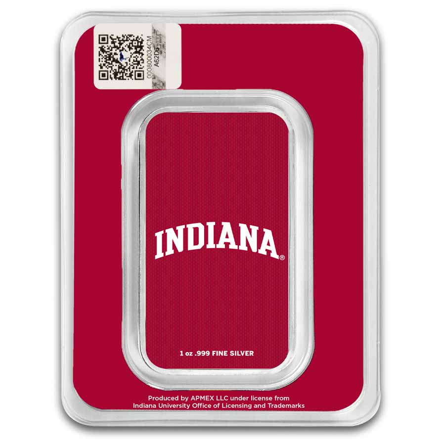 - Reverse: Showcases INDIANA in cream colored lettering commonly used as the school's brand on a crimson background. The metal content, weight, and purity is also listed.