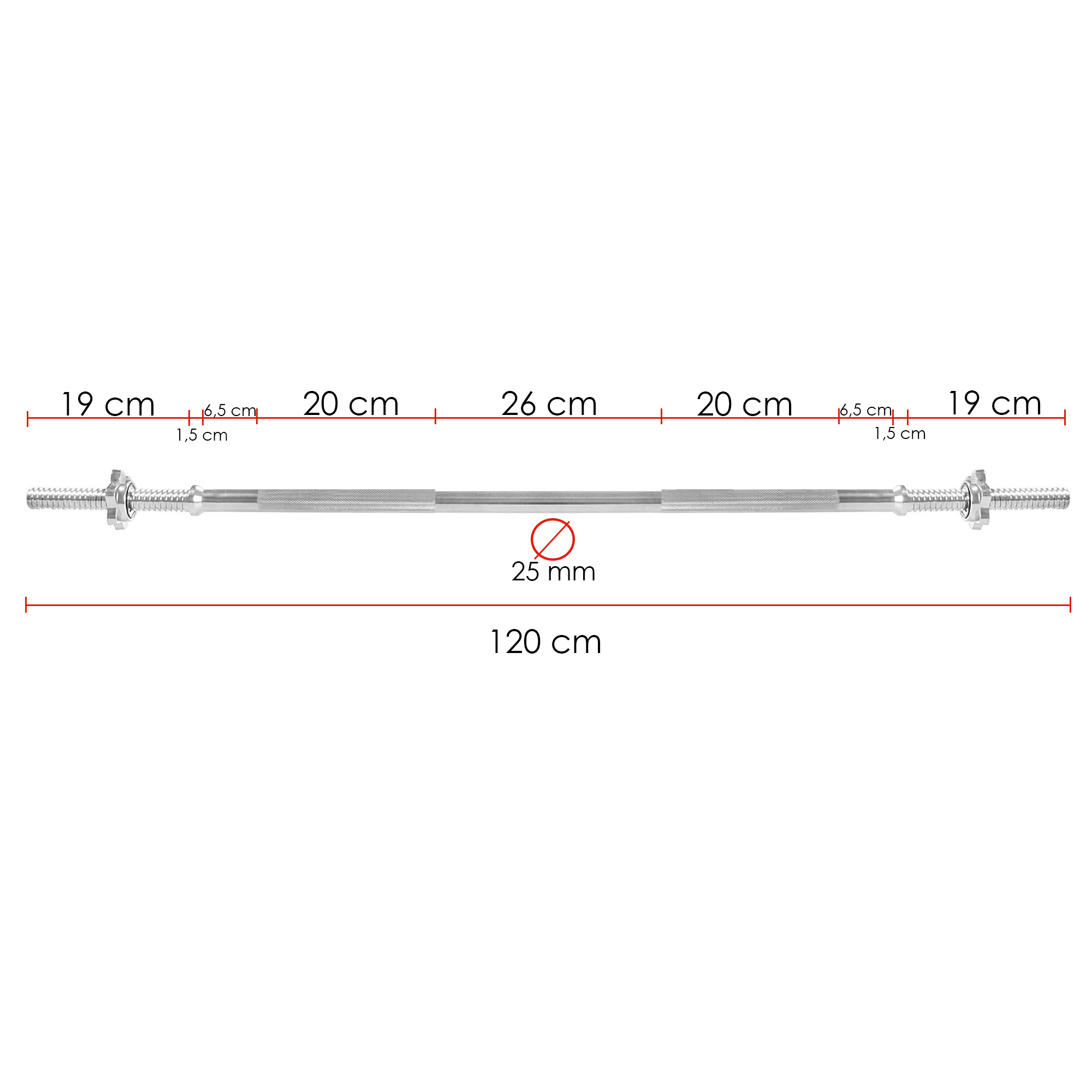 Die 120 cm lange Langhantelstange von Springos eignet sich perfekt für Krafttraining zu Hause. Hergestellt aus den hochwertigsten Materialien und mit einem rutschfesten Griffteil garantiert es ein sicheres und komfortables Training. Um maximale Sicherheit zu gewährleisten, wurde das Griffteil geriffelt und die Klemmen mit zwei Gummidichtungen ausgestattet. Die Farben können sich leicht von den tatsächlichen Farben unterscheiden, je nach den Parametern Ihres Bildschirms..