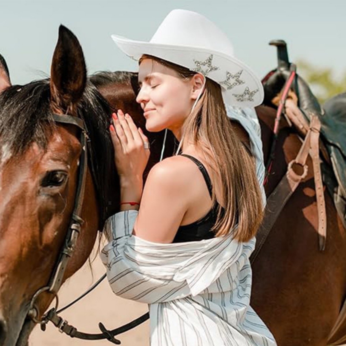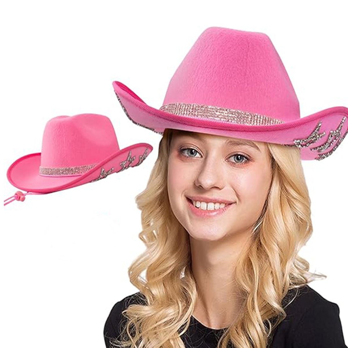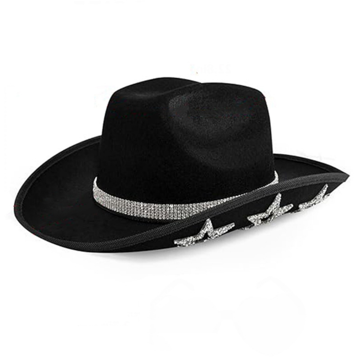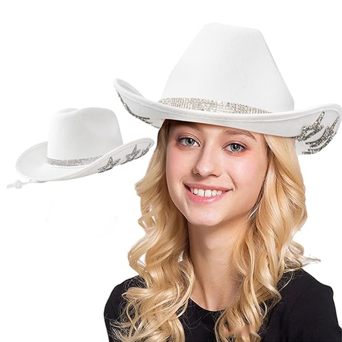 Rhinestone Cowgirl Cowboy Hat with Glitter Star For Women Carnival Cosplay