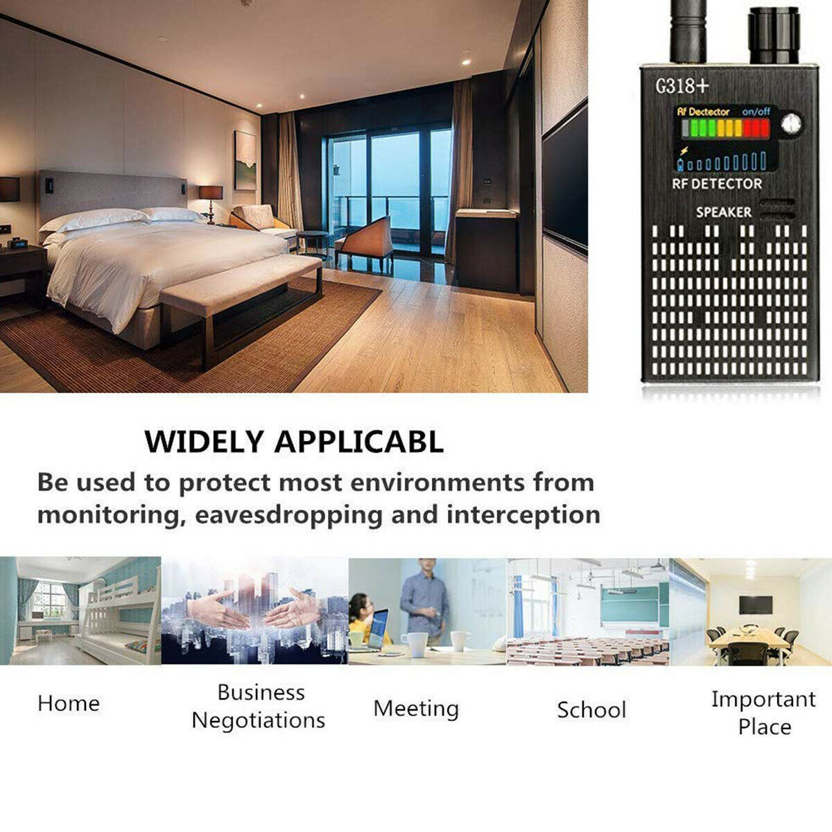 - WIDE APPLICATION - Family, Office, Hotel, Car, Bathroom, Dressing Room, Business Negotiation, Confidential Session, Factories, Important Workshop and Research Room, Military Installation, Government Agencies, Entertainment Venues or as a Monitor for school examinations. The signal detector is specially designed for people who care about privacy, people who travel or stay in hotel a lot, and all security personnel. Wide range of detection frequency meet all needs.