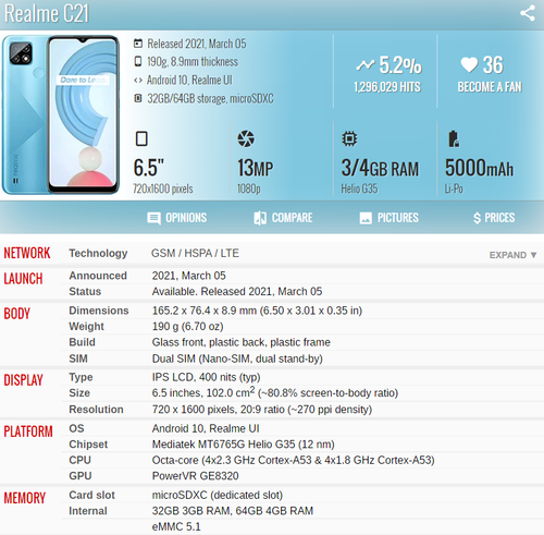 For Oppo Realme C21 RMX3201 (Glass + Lcd Display)