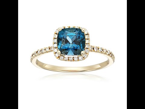10k Yellow Gold London Blue Topaz & Diamond Cushion Halo Engagement Ring For Women's, Anniversary Gifts, Personalized Gift For Her.