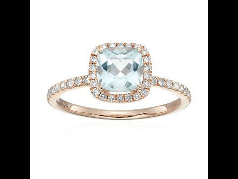 10k Rose Gold Aquamarine and Diamond Cushion Halo Engagement Ring For Women's, Anniversary Gifts, Personalized Gift For Her.