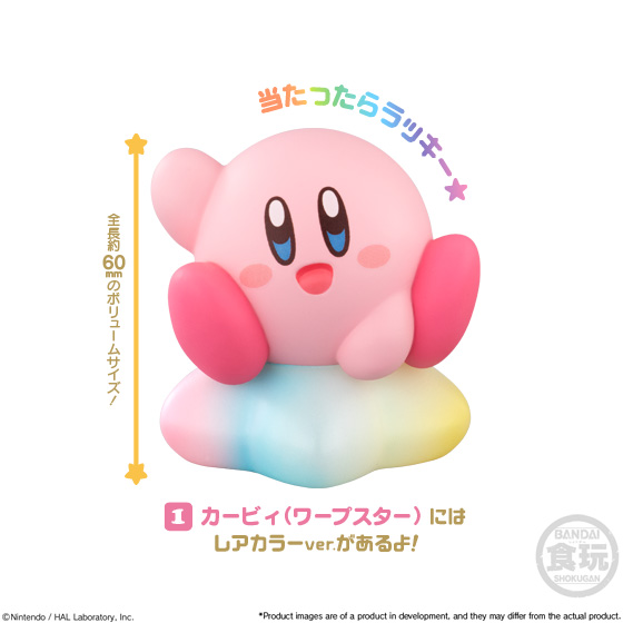 There is even a chance to get a secret color variation version of Kirby on Warp Star! You will receive one of the following in a random blind box: Kirby on Warp Star, Waddle Dee, Kirby with His Mouth Full, Kirby with Star Rod, Parasol Kirby, Beam Kirby, Sword Kirby, Sleep Kirby.
