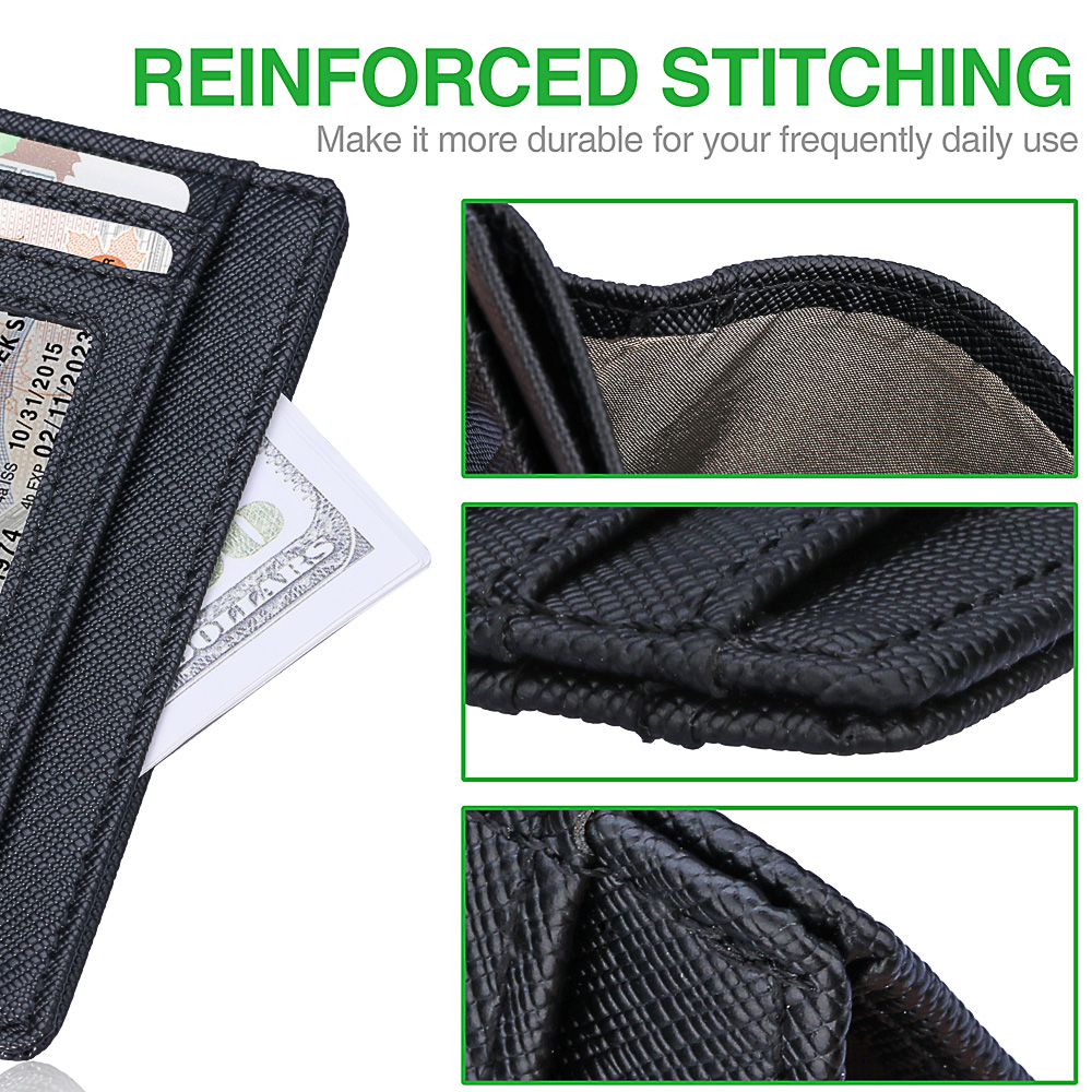 - LUXURY LEATHER, AFFORDABLE, STYLISH and FUNCTIONAL - Fit Front Pocket Nicely, perfect for people who want thin and small wallet to hold money and cards.