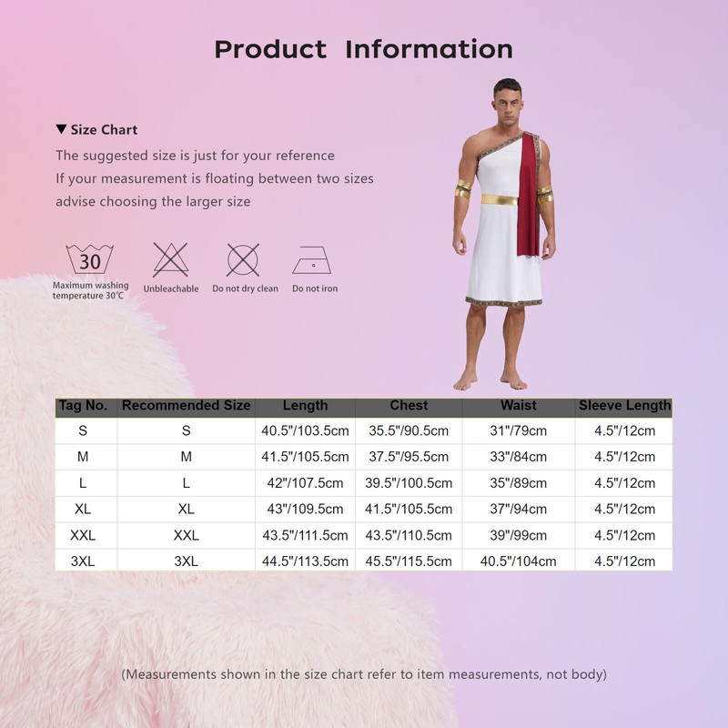 Perfectly pairing with wreath and scepter for a complete ancient Greek or Roman look, the clothes is perfect for Halloween dress-up party.