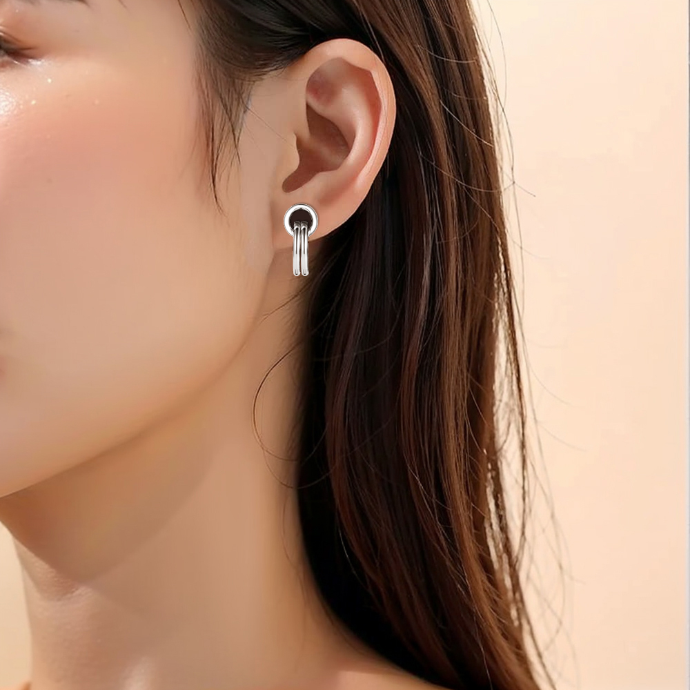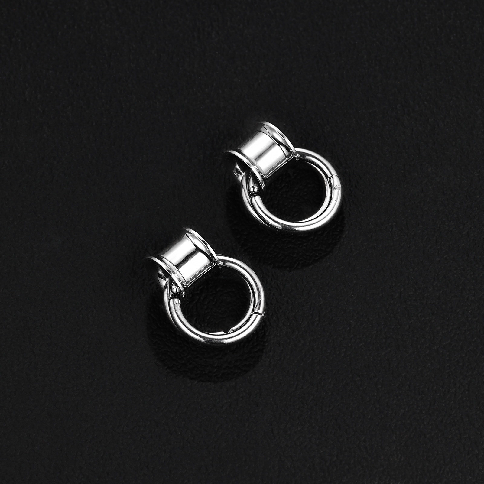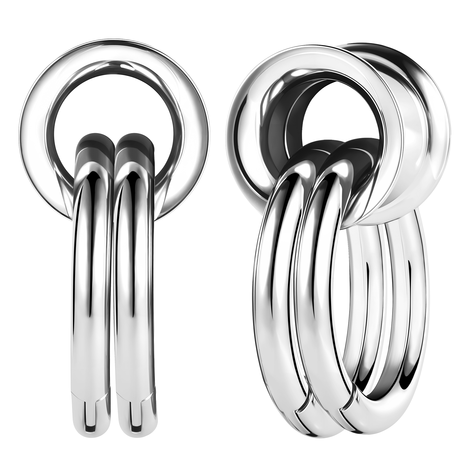 1 Pair Stainless Steel Dangle Ear Gauges with Rings Ear Tunnels Ear Expander