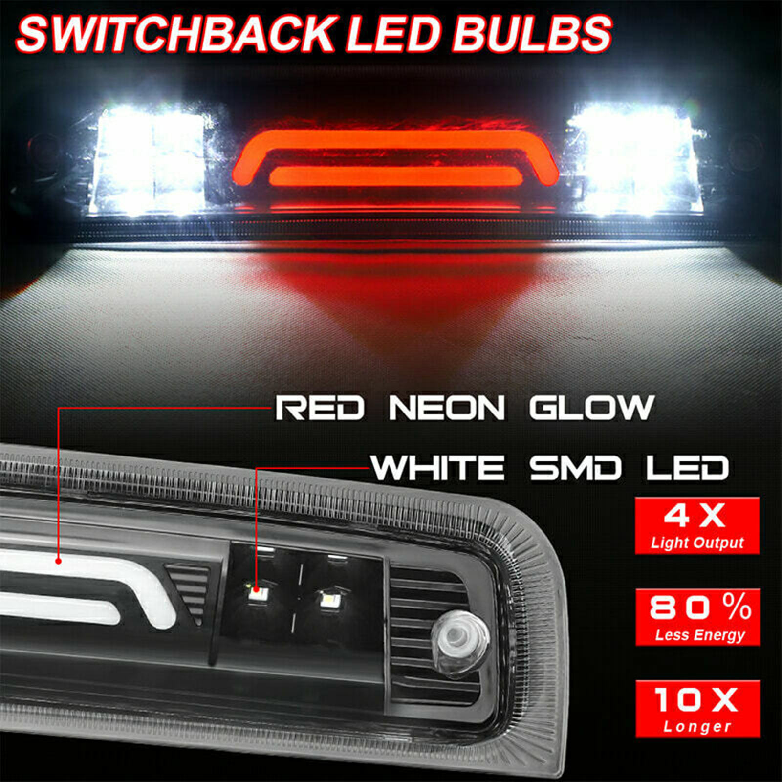 【Premium LEDs】Powerful LEDs designed to be visually striking and enhance visibility. Use unique design the third brake light, full LED light source for a great indication of brake and cargo to enhance driving safety. (8 LED for Cargo Light)