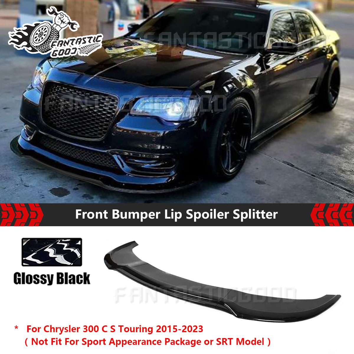 For Chrysler 300 C S Touring 2015-2023 V2 Style Glossy Black Front Bumper Lip Splitter Kit