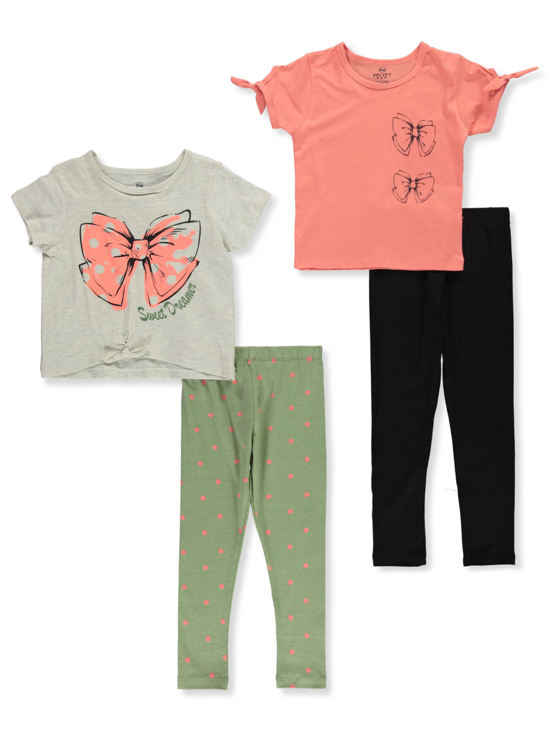 Pink Velvet Girls' 4-Piece Mix Match Bow Leggings Set Outfit - orange/multi, 2t