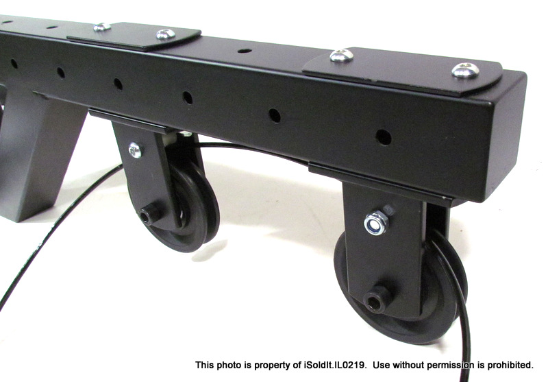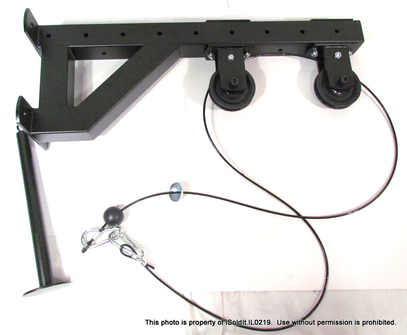 For sale here is a WALL MOUNT LAT MACHINE with PIN. Made of Heavy-Duty Steel, this is not the cheap kind being sold elsewhere! Pre-owned, item is in great condition and comes with everything pictured. It measures 25" x 9" x 6". Thank you for your interest!