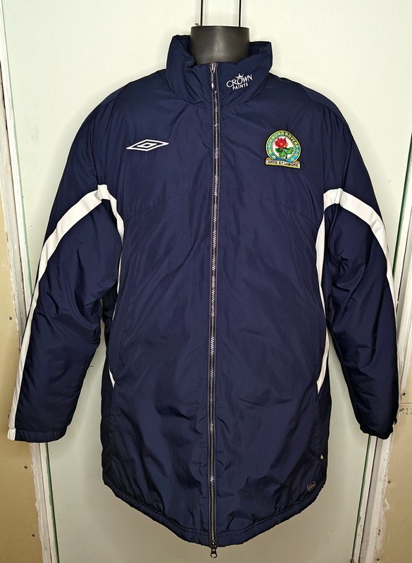 You are bidding on a Vintage 2008 Umbro Blackburn Rovers navy blue padded bench coat size XXL