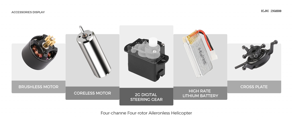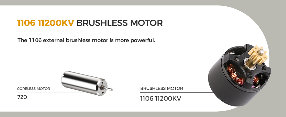 9. Using 1106 outrunner brushless motors with strong power, Standard configuration 3.8V 800mAh 20c high-power battery, flight time is about 8 minutes.