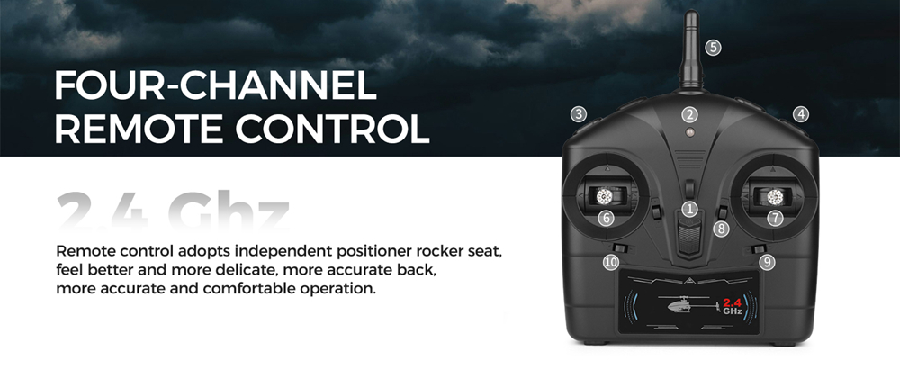 1. 4-channel remote control, free switching between left and right hands, airplane, remote control low voltage prompt and other functions.