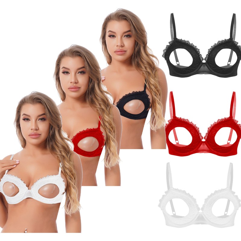 Womens 1/4 Cups Underwire Bra Halter Neck O Ring Sheer Lace Push Up Brassiere Underwear.