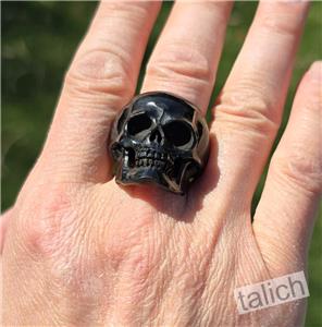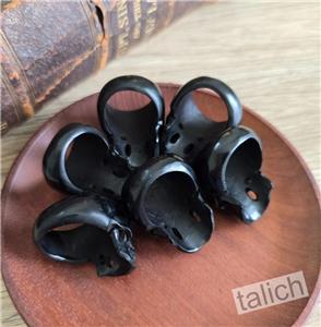 Large skull ring hand carved from a single piece of black buffalo horn. Polished shiny and smooth for comfortable wear. Amazing bold statement piece!