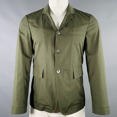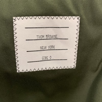 THOM BROWNE Size XS Green Olive Notch Lapel Jacket IN-STORE ID: 136853THOM BROWNE jacket in an olive green woven fabric (feels like cotton) featuring a notch lapel, double vented back, and three button closure. Made in Japan. Original Retail Price (if known): $0.00 Category: Sport Coat More Details Brand: THOM BROWNE Size: XS Chest Size: XS Gender: Male Color: Green Color 2: Olive Fabric: Not Listed Style: Notch Lapel Country of Origin: Japan Age Group: Adult