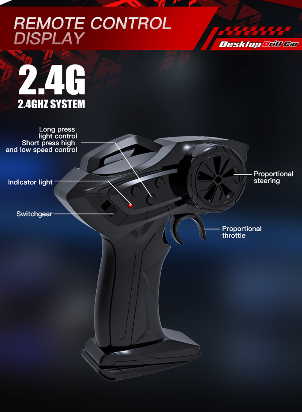 KF20 Mini Desktop Drift Racing Car, Adopting 2.4G remote control system,with four-wheel drive,allowing you to easily accomplish Figure eight drift,Circular drift,Curvilinear drift racing activities,for a different experience!