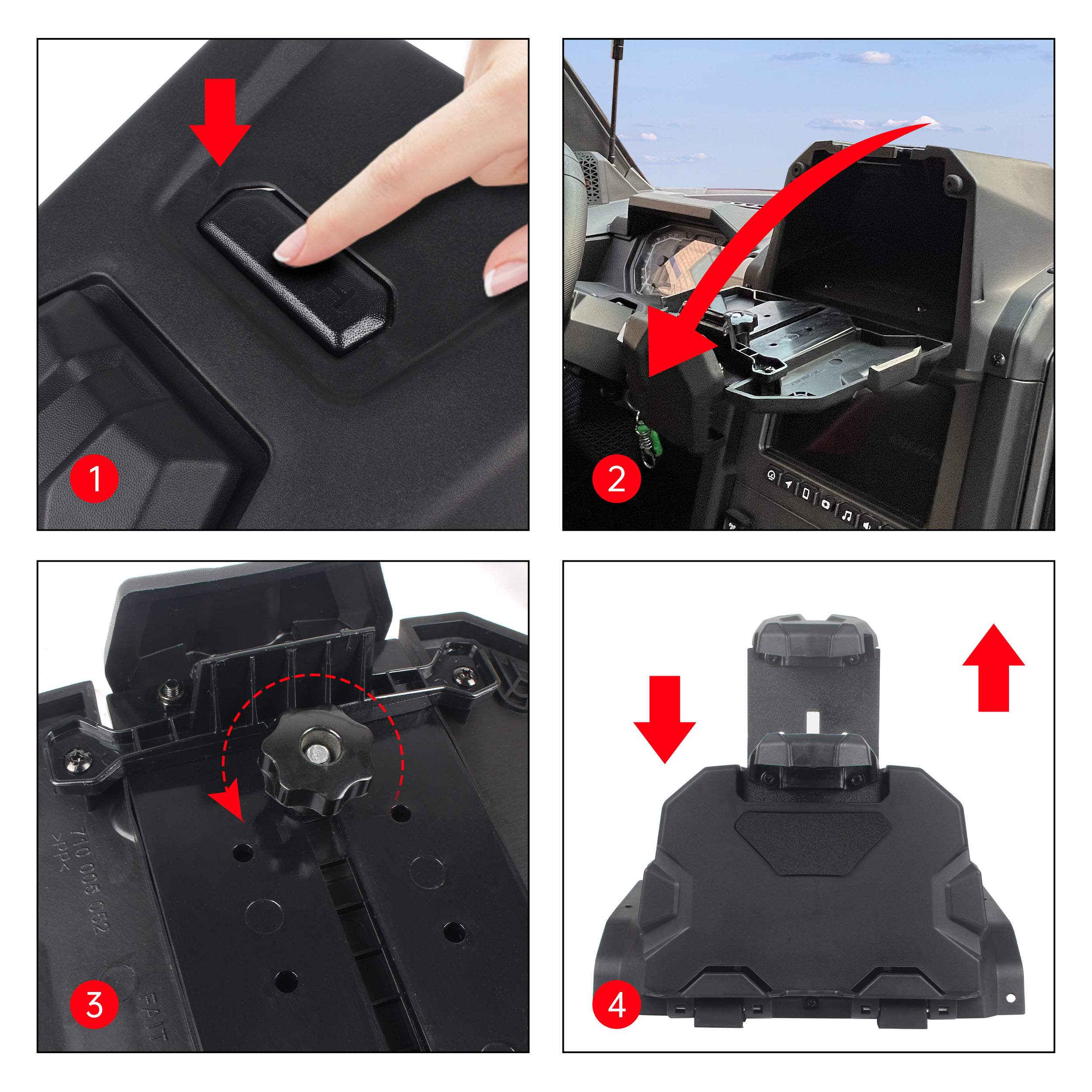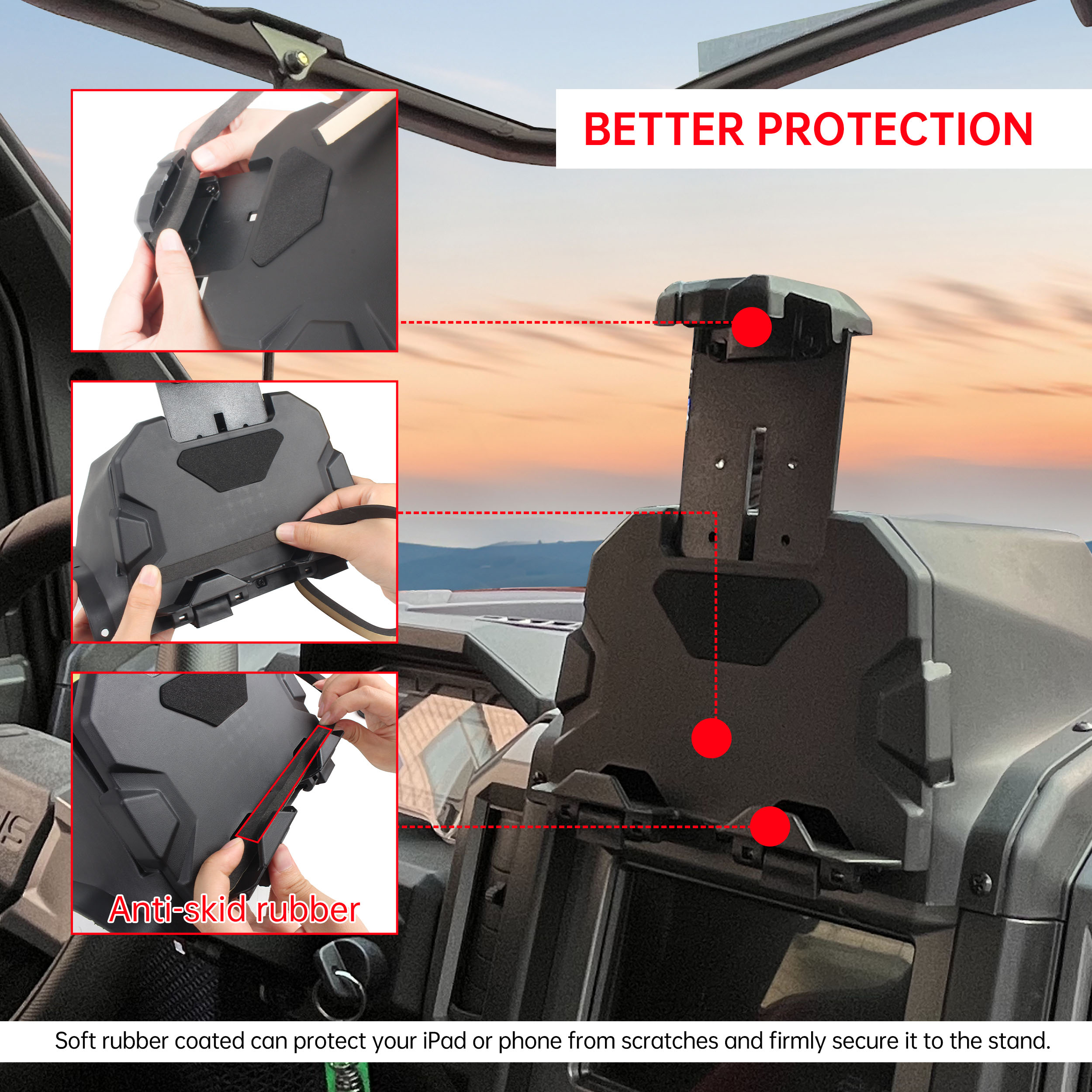 Adjustable and suitable for most tablets, phones, and navigators (5.1 'to 10'), securely securing your tablet and phone. The navigation bracket is located above the UTV dashboard, making it easier for you to check your device.