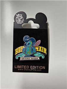In this limited edition surprise pin Stitch appears on the sign for the Ben Hair Salon found in the Hollywood Pictures Backlot district of Disney's California Adventure® Park. pin says "An Epic Salon" (for search) This pin was released at Greetings from California in Disney's California Adventure® Park.