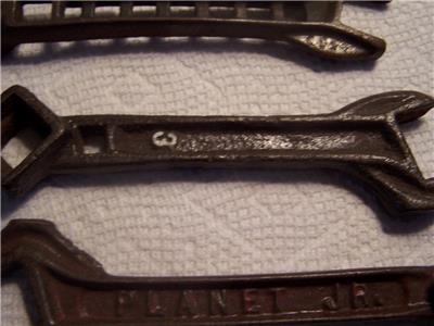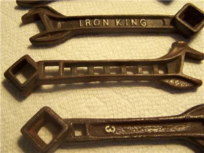 This is a very nice like new condition lot of 6 antique cast iron wernches, see photos for markings, 2 no markings