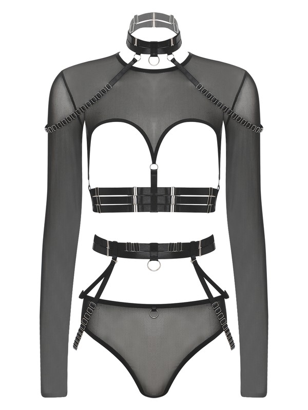 Set Include: 1Pc Women Tops, 1Pc Thong, 1Pc Choker, 1Pc Waistband, 2Pcs Chains