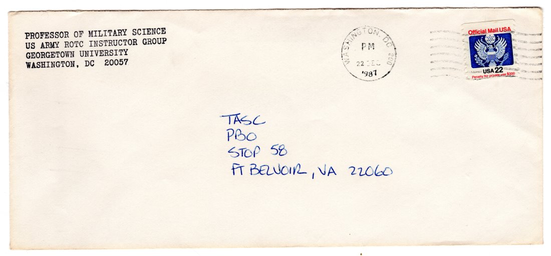 United States #O136 Postally Used Official Cover Georgetown University ROTC. I am a 40+ year APS member. If you have any problems at all with your win, let me know and I'll fix the problem to the best of my ability. Currency conversion is as of the time the lot was created. This will vary as rates change daily. Please visit my eBay store for additional items at reasonable prices. Add additional items now to ship with your auction winnings and save on P&H charges.