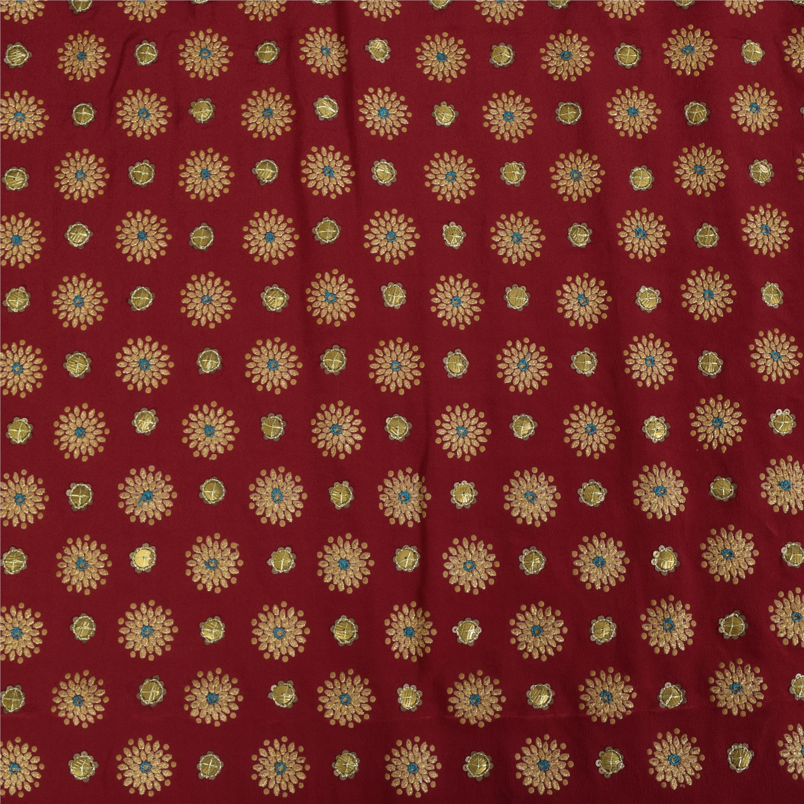 • Floral Design With Golden Rubber Paint & Sequins Work In Center Part Of Sari .
