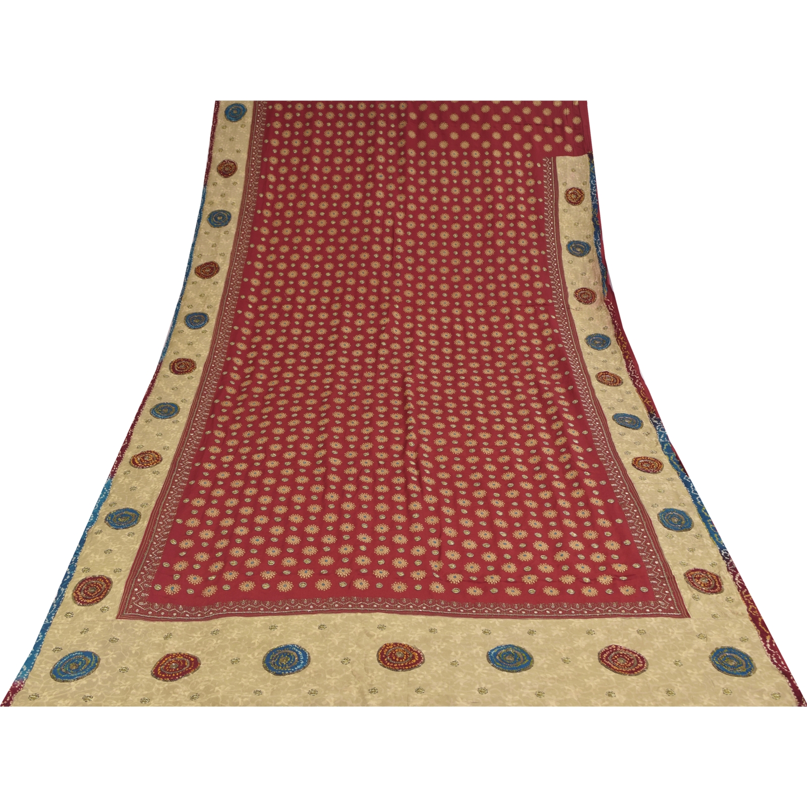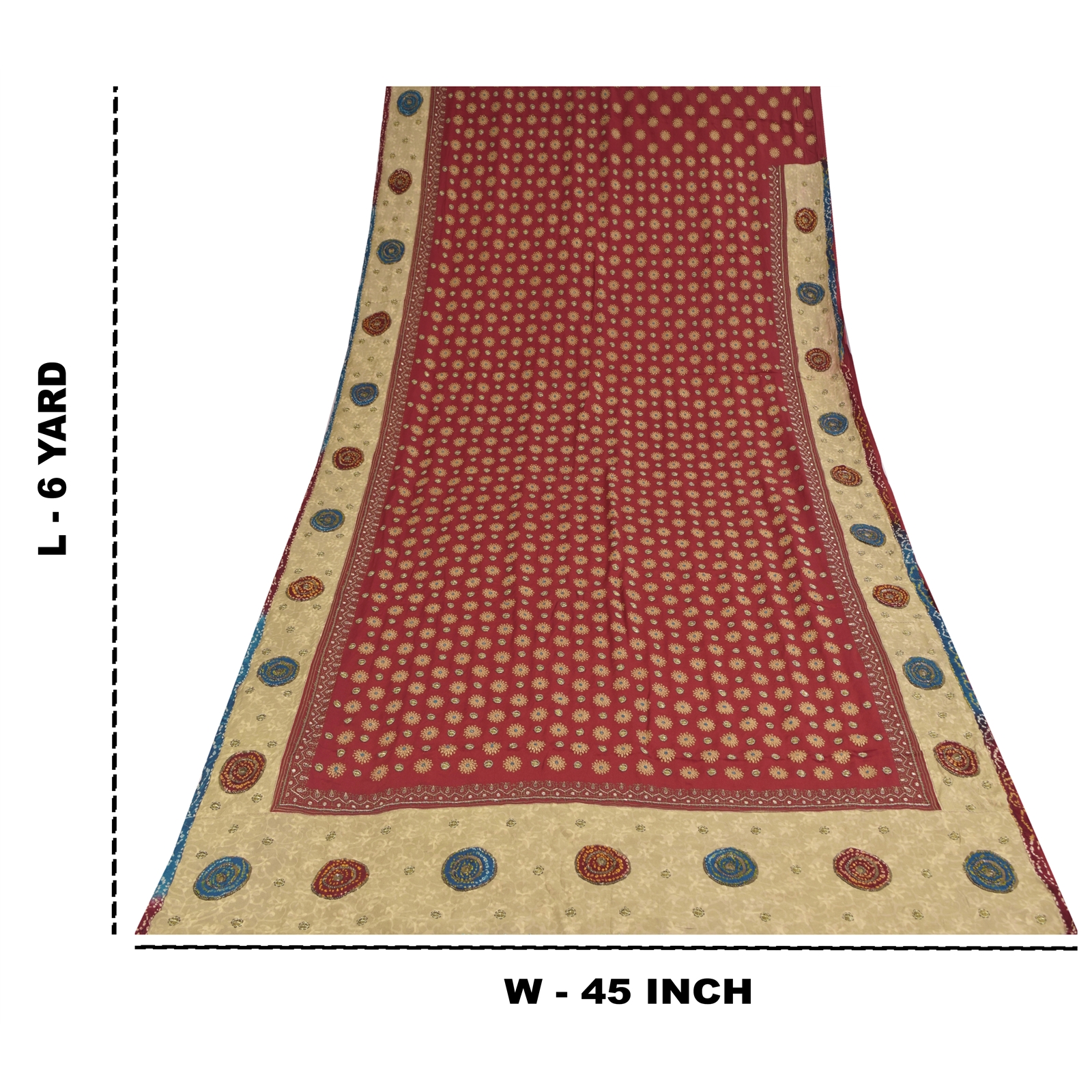 This Unique Vintage Saree Can Be Used For Various Crafting Ideas Even If You Don't Want To Use It As A Sari. Design A Dress, Use It As A As Window Dressing, Upholstery, Sarongs, Throw, Dress Making And Table Linen Much More. Let Your Creative Juices Flow And Use This Decorated Fabric In Multiple Fashion.