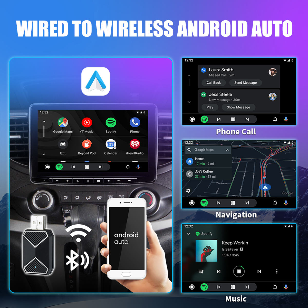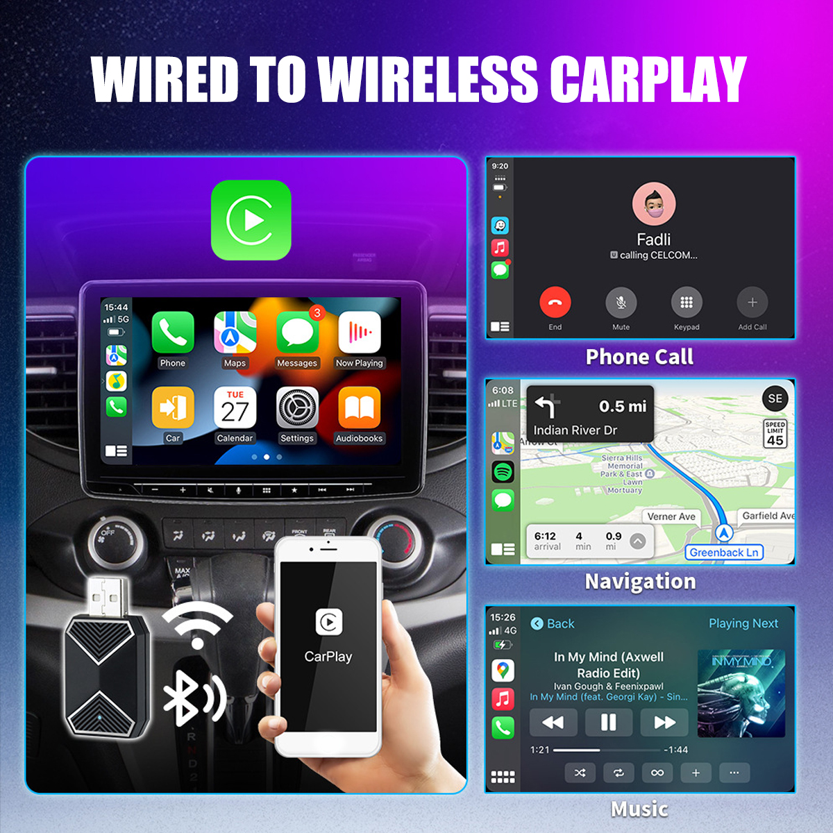 【CarPlay Wireless Adapter】Easily convert wired Carplay to wireless Carplay without complex operations. Supports navigation, music playing, Siri assistant, phone calls, text messaging, etc. You can continue to use full Carplay functionality and keep original car operation. No more tangled cables. From now on, free your iphone!