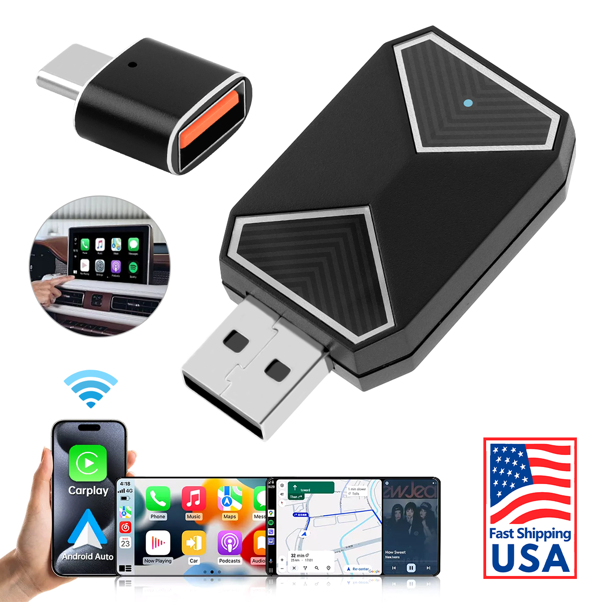 【Wide Compatibility】This Apple Wireless Carplay and Android Auto adapter comes with USB to USB-C adapter, is suitable for more than 800 car models after 2016 with factory wired Carplay. NOTE: Not compatible with BMW, Tesla. Please make sure your phone also supports Carplay/Android Auto, and we recommend using iOS 10 and above, and Android 11 and above for optimal performance