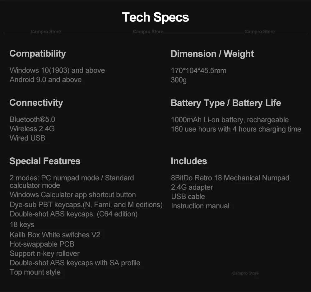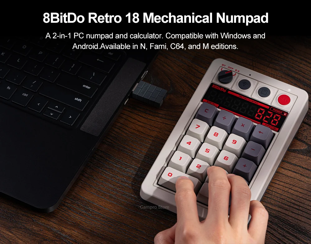 8BitDo Retro 18 Mechanical Numpad Available in N,Fami,C64,and M Editions.