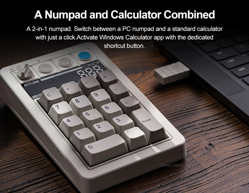 A 2-in-1 PC numpad and calculator. Compatible with Windows and Android.