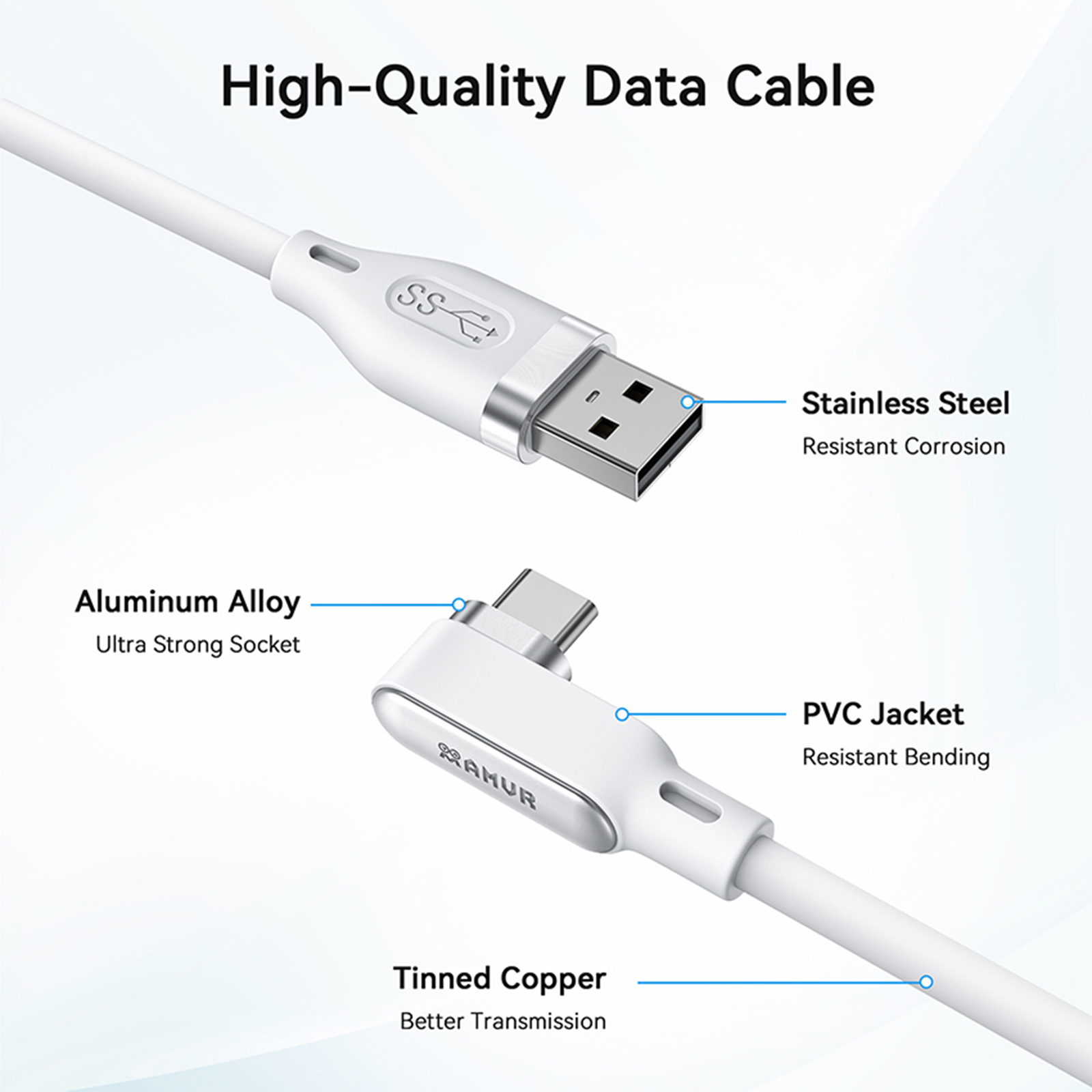 l Rugged and durable, longer life: aluminum alloy interface breakage resistance up to 10KG, data cable SR anti-bending design up to 2000 + times