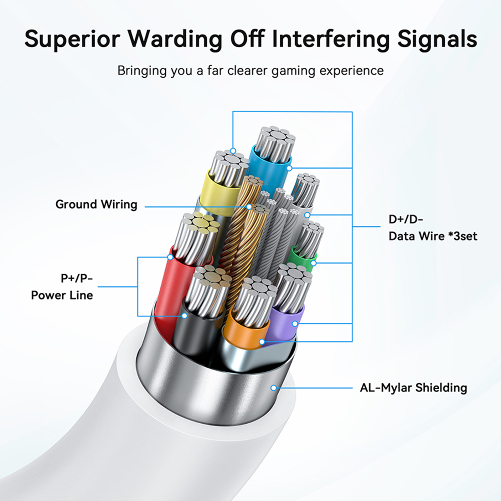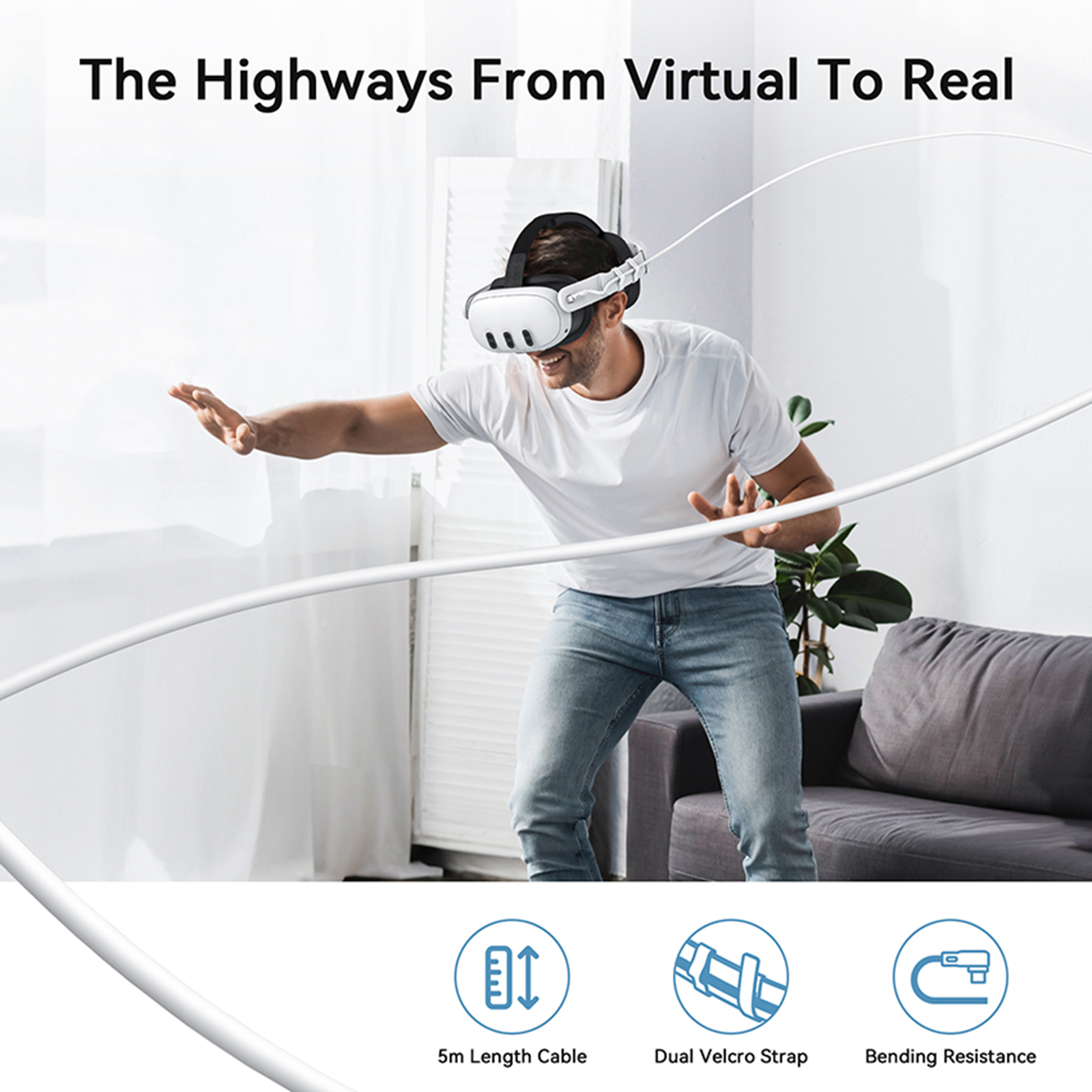 l Higher value: the use of wire body + aluminum alloy silver plating process, perfectly matching the VR host at the same time, more classy!