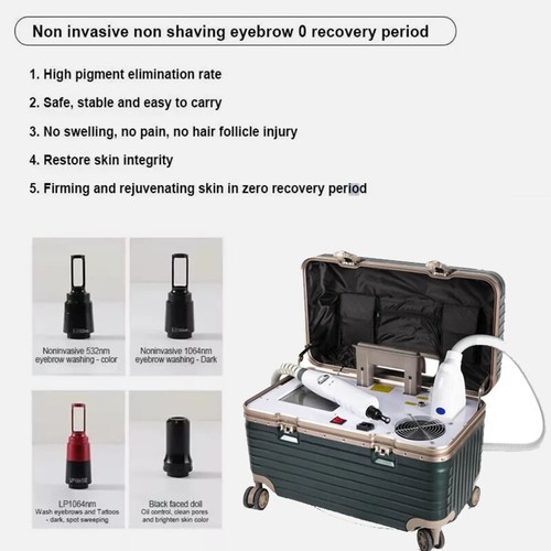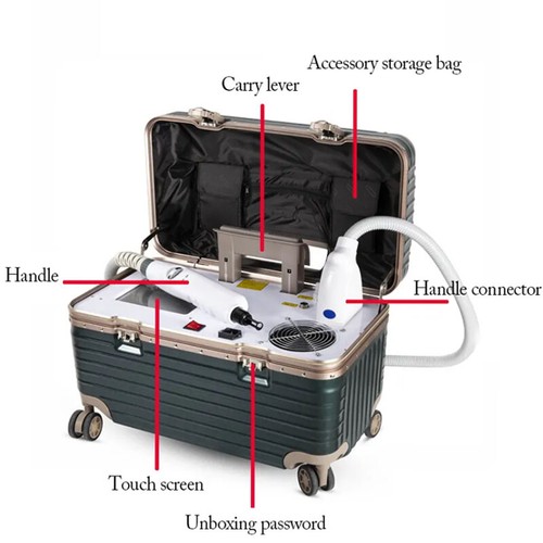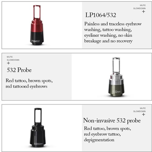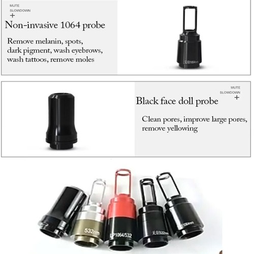 Dedicated YAG crystal (superior grade), single pulse energy up to 200MJ, multi-pulse energy up to 1200MJ:2NM laser head to remove red base, 1064 laser head to remove black base, black face doll treatment head for whitening and skin rejuvenation (with toner for treatment);