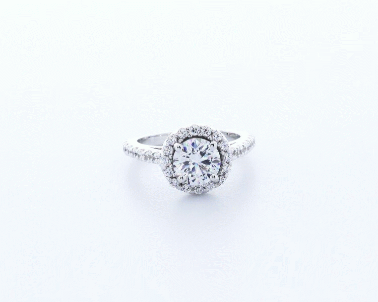 1.9CT Lab-Created Diamond D/VVS1 Excellent Cut Round Brilliant 18K White Gold 4-Prong Setting Halo Engagement Ring