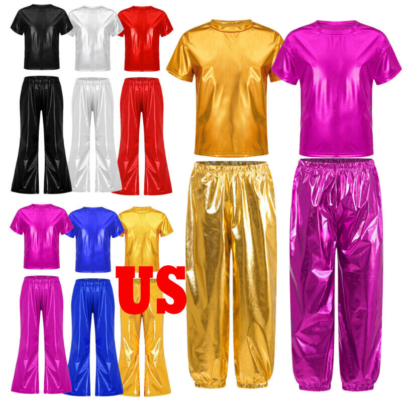 Kids Girls and Boys Metallic Shiny T-shirt Sparkly Jazz Dance Tops.