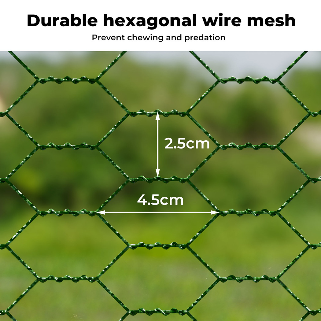 Upgrade your poultry care with the Pawz Chicken Coop, designed for durability, safety, and convenience. Built with premium materials, it features 25mm galvanized round pipes with a 0.7mm wall thickness, ensuring long-lasting strength and rust resistance. The 1.1mm static-coated hexagonal wire mesh provides a strong, protective barrier, while the 420D Oxford cloth with silver coating offers superior waterproof, UV-resistant, and anti-scratch performance—ideal for those seeking chicken coops extra large enough for multiple birds.