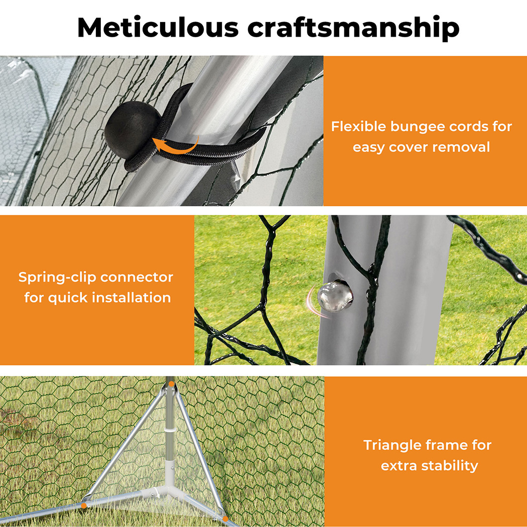 This walk in chicken coop is built to withstand the elements, with a heavy-duty tarp that protects against rain, snow, and sun damage. Its sturdy structure, reinforced poles, and enlarged foot pads ensure exceptional stability, even in 8-level winds. For added security, the coop includes ground stakes to firmly anchor it into the soil, preventing movement or wind damage—making it a reliable chicken run solution by Pawz.