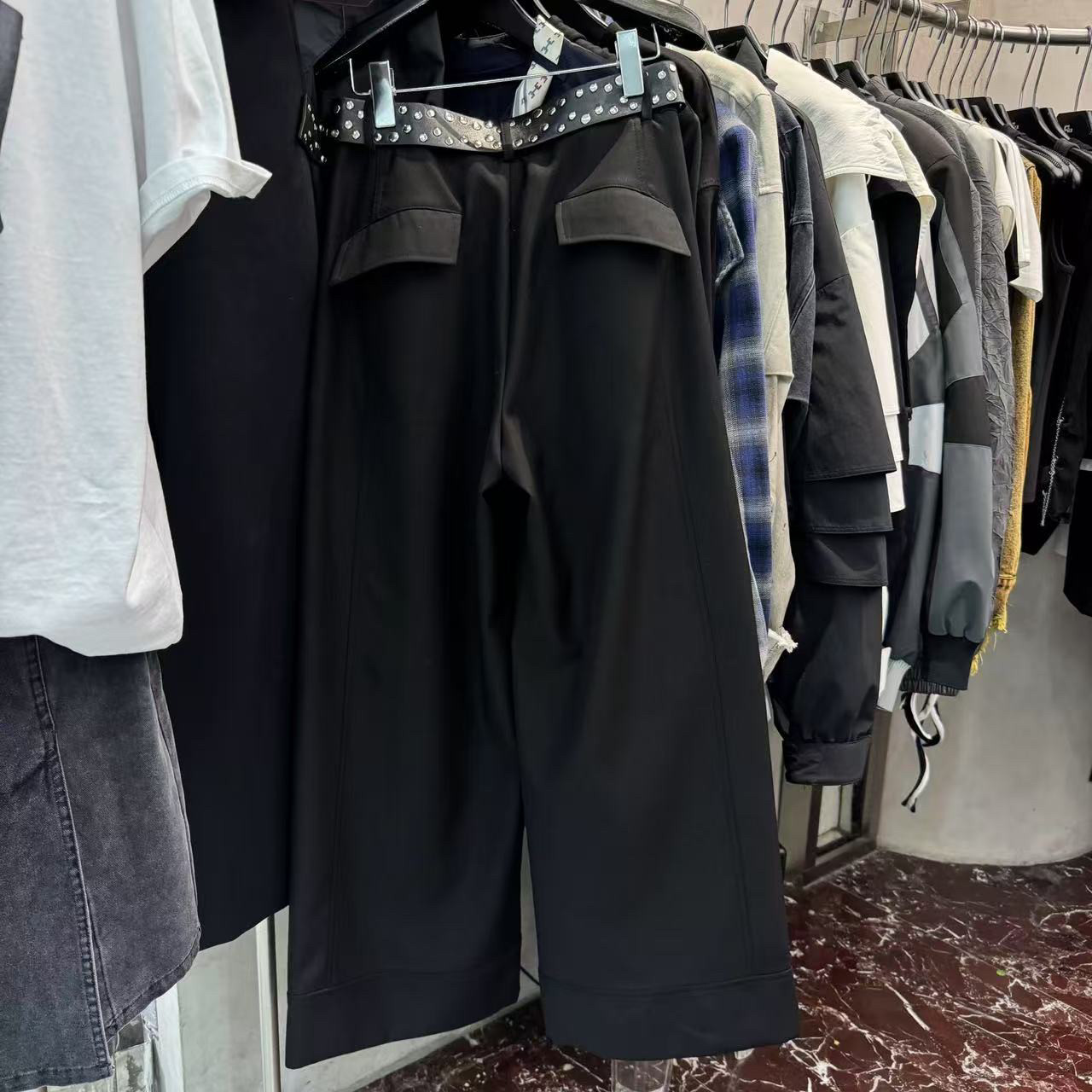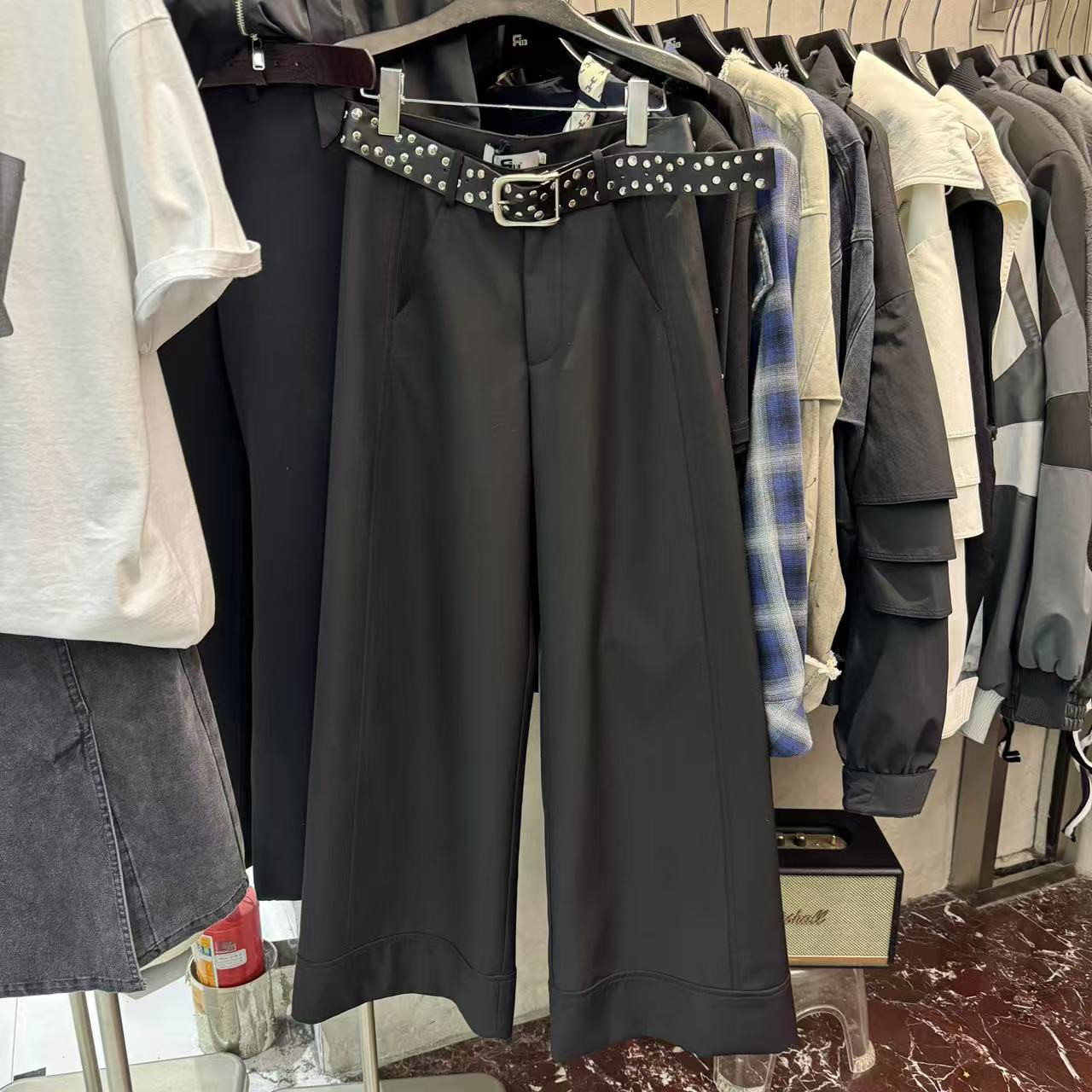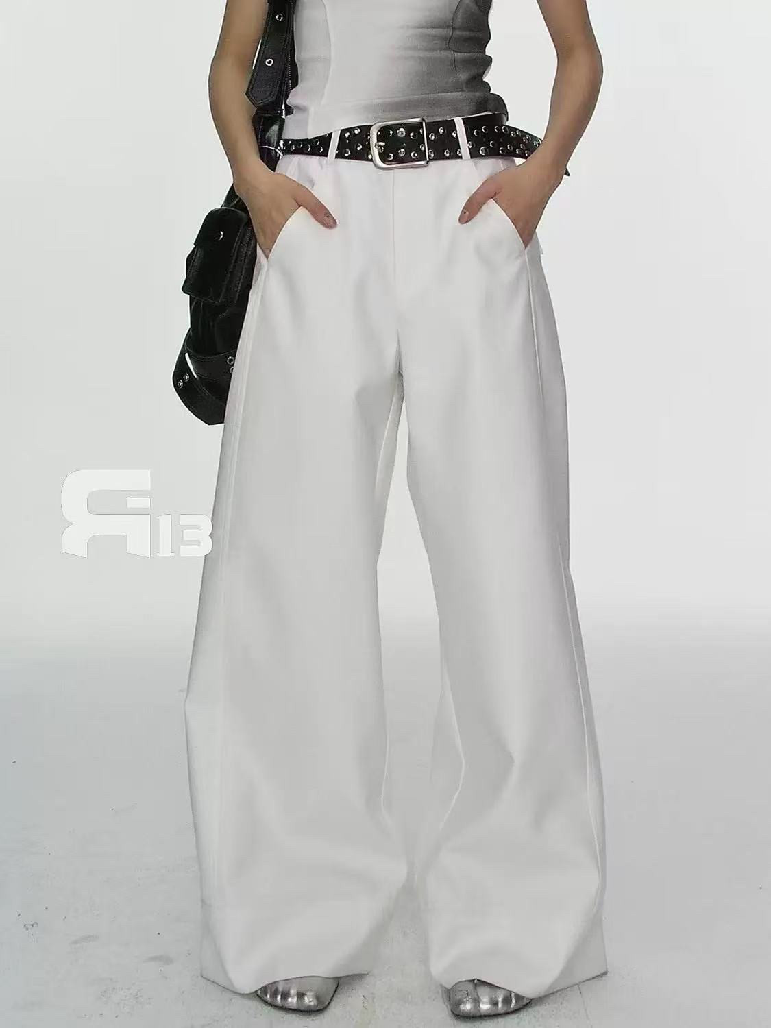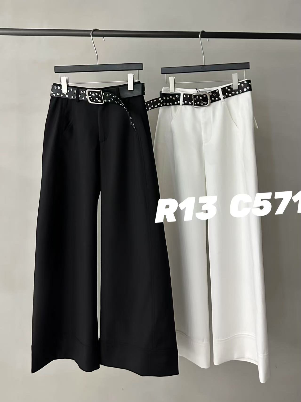 R13 High-waisted Slacks, Straight-leg Pants, Wide-leg Pants with Belt, Women