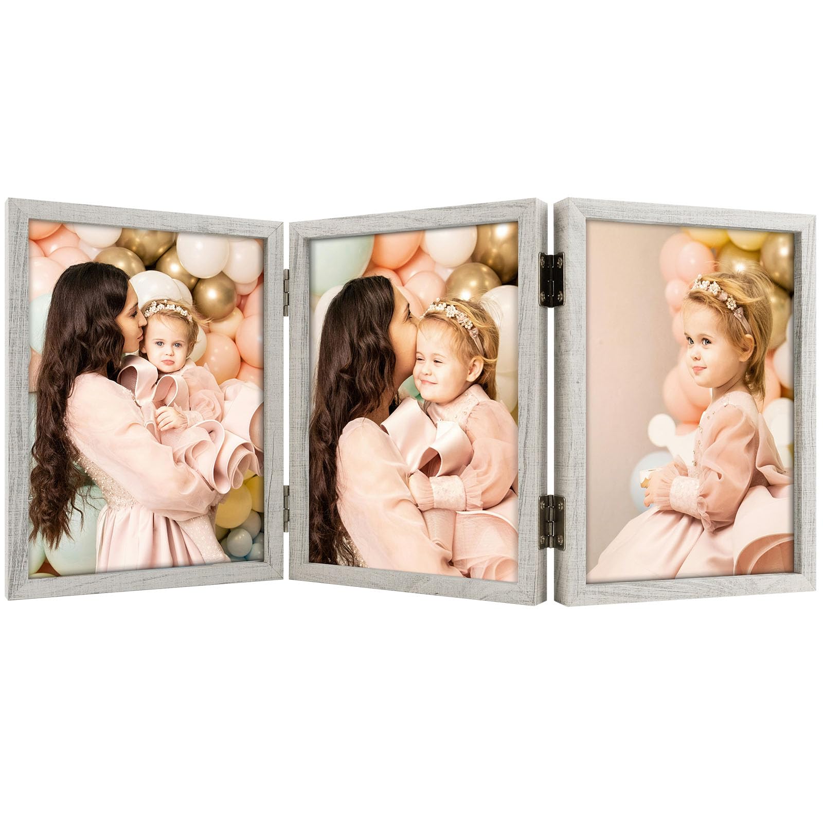 5x7 Triple Hinged Frames, 3 Folding Picture Frame, Triptych Photo Frame, Stand Vertically on Desktop or Tabletop, Whitewashed Oak