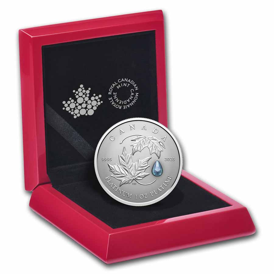This limited-mintage platinum coin makes a unique gift for collectors and investors alike. Add this 2025 Proof Canadian Platinum Maple Leaf Forever coin to your cart today!