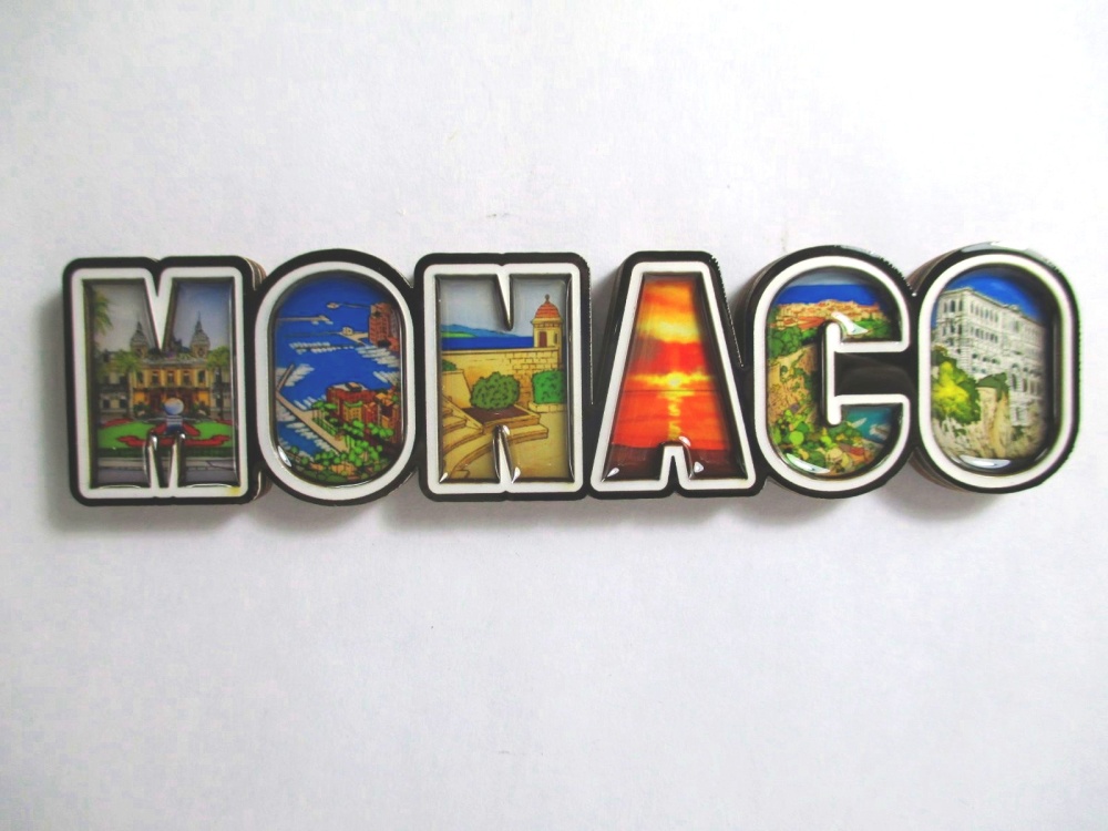 Monaco Magnet Souvenir Holz Epoxy Fürstentum Palast Hafen Urlaub (P6)