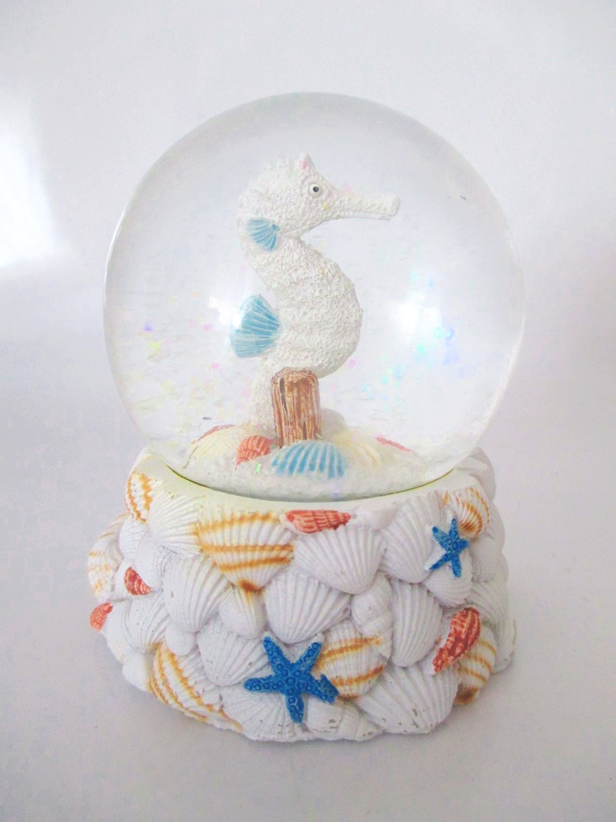 Bitte beachten: die weißen Punkte,die sie auf den Bildern sehen,sind in echt natürlich nicht vorhanden,sie stammen von den Fotoleuchten.Die Schneekugel ist nämlich echt schwer zu fotografieren ohne Spiegelungen im Glas. |